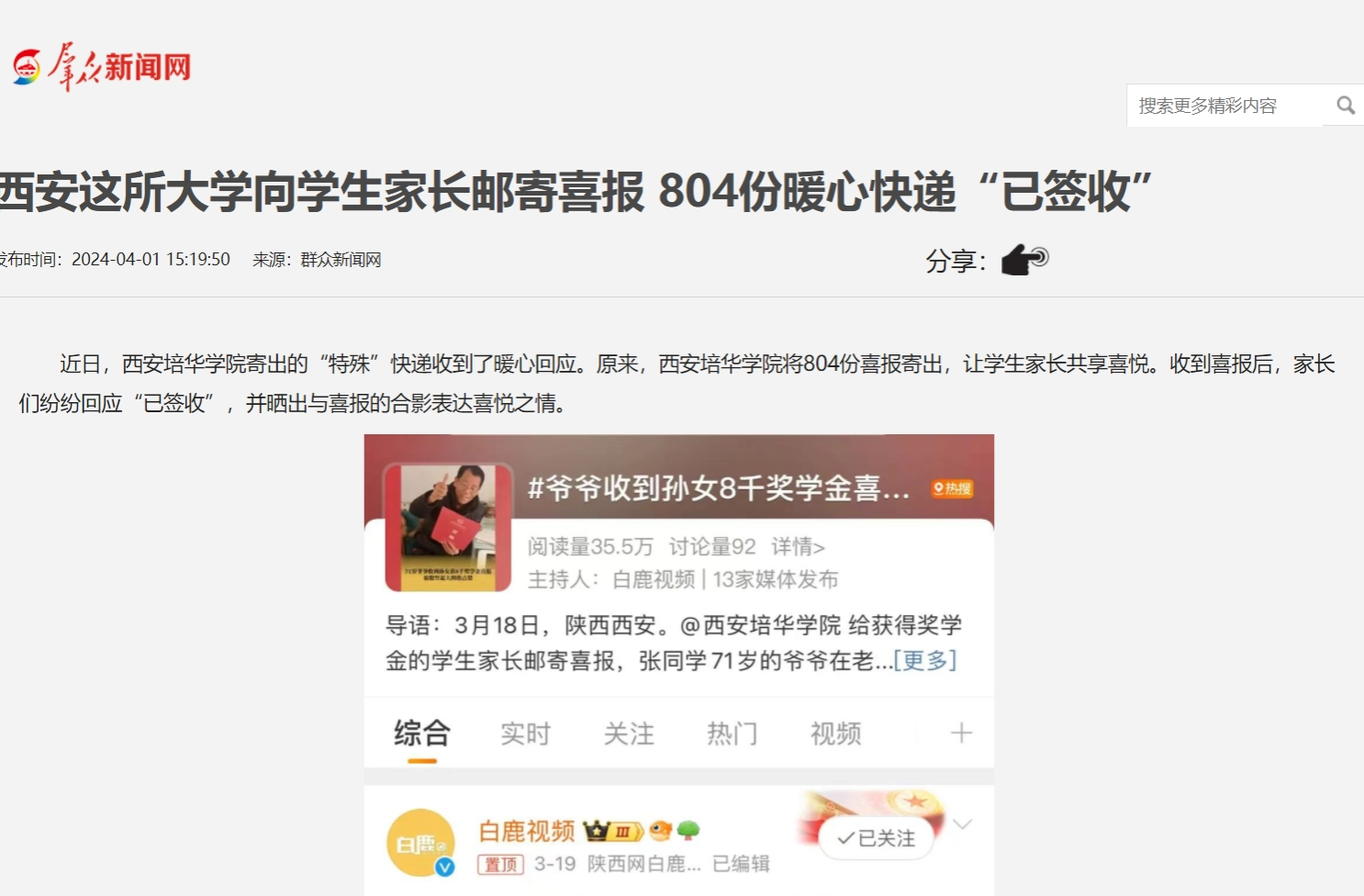 近日,星空·官方站网页版寄出的“特殊”快递收到了暖心回应。原来,星空·官方站网页版将804份喜报寄出,让学生家长共享喜悦。收到喜报后,家长们纷纷回应“已签收”,并晒出与喜报的合影表达喜悦之情。