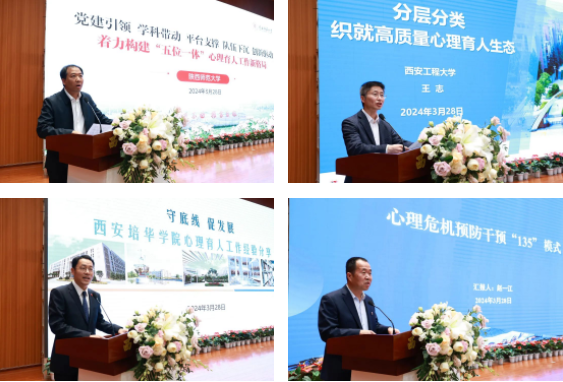 董侠发表讲话,她表示,2024年全省高校心理育人工作要围绕全面实施学生心理健康专项行动这条主线,突出“五育并举”,强化“三全育人”,全链条、全方位构建有利于学生身心发展和潜能发挥的心理育人环境,整合和优化家校社等育人合力,完善学生心理问题的多维度感知体系,全面提升学生心理危机干预效果。要建立健全全员育心工作机制,营造人人关心学生心理健康的良好局面;全面对标教育部专项行动计划任务要求,调动学生发挥主体作用的积极性,开展多维动态筛查,增强预警防控体系的灵敏度,扎实做好学生心理危机防控工作;全面对标维护教育系统安全稳定大局任务要求,落实好主体责任,强化平台保障,打造浸润式心理育人生态环境,集中攻坚重点难点问题,织密织牢生命安全防护网。