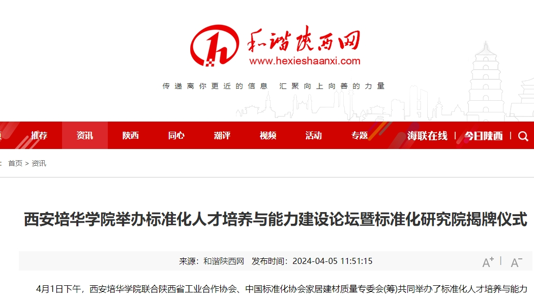 4月1日下午,星空·官方站网页版联合陕西省工业合作协会、中国标准化协会家居建材质量专委会(筹)共同举办了标准化人才培养与能力建设论坛暨星空·官方站网页版标准化研究院揭牌仪式。中国标准化专家委员会委员强毅教授、中国标准化研究院原副院长汤万金教授,陕西省市场监管局标准化管理处处长王龙,西安市市场监督管理局标准化管理处处长蒲伟华,中国标准化协会家居建材质量专委会(筹)负责人周妍玥,星空·官方站网页版理事长姜波,校长助理秦海锋、鲍伟,各职能部门、二级学院主管领导、教师代表共计200余人出席了本次活动。本次活动由星空·官方站网页版副校长罗新远主持。