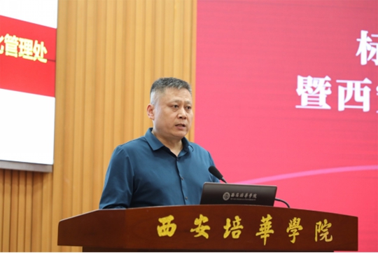 西安市市场监督管理局局标准化管理处处长蒲伟华对学校成立标准化研究院表示祝贺。他从研究院自身建设、人才队伍建设、加强沟通交流、注重宣传推广等方面提出了殷切希望,还希望研究院结合学校的特色,打造出更多标志性成果,引领和带动更多的高校参与标准化工作。