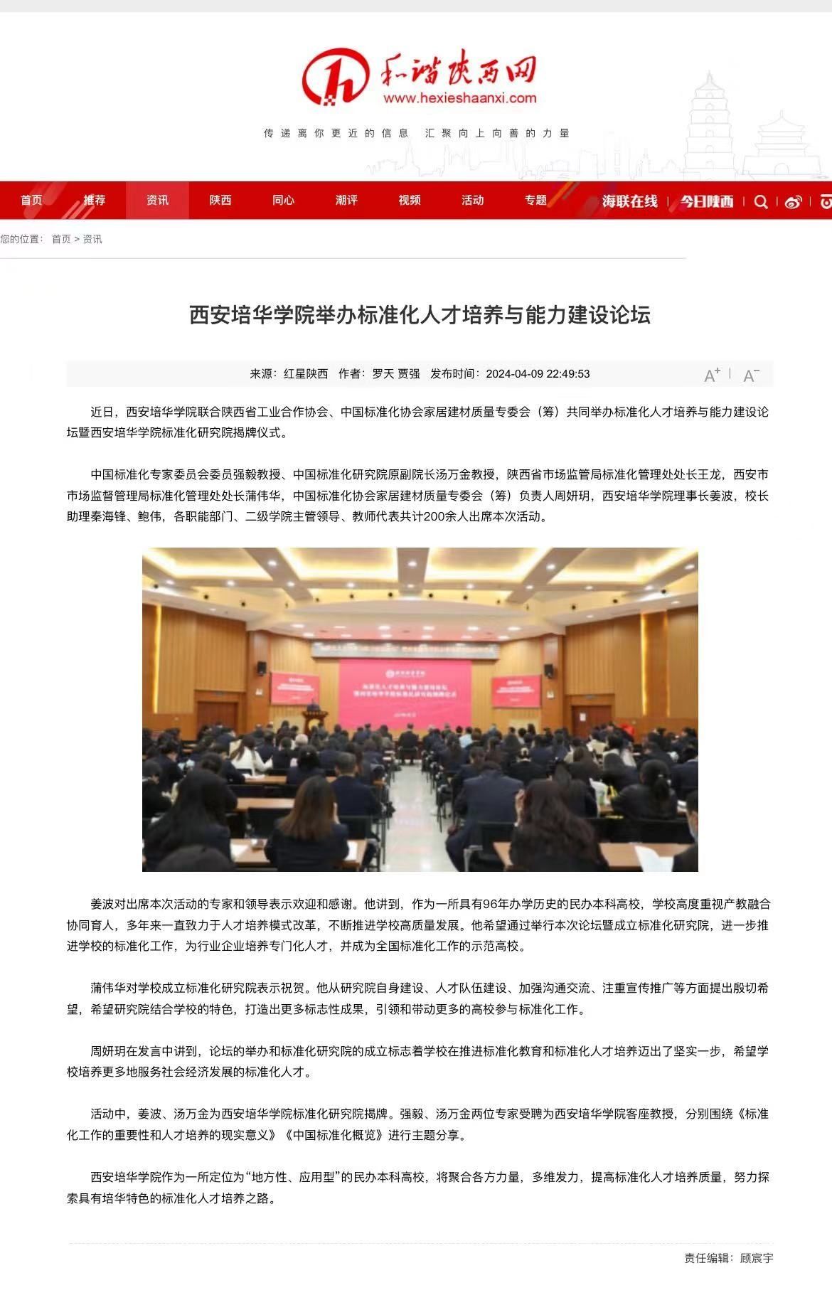 中国标准化专家委员会委员强毅教授、中国标准化研究院原副院长汤万金教授,陕西省市场监管局标准化管理处处长王龙,西安市市场监督管理局标准化管理处处长蒲伟华,中国标准化协会家居建材质量专委会(筹)负责人周妍玥,星空·官方站网页版理事长姜波,校长助理秦海锋、鲍伟,各职能部门、二级学院主管领导、教师代表共计200余人出席本次活动。