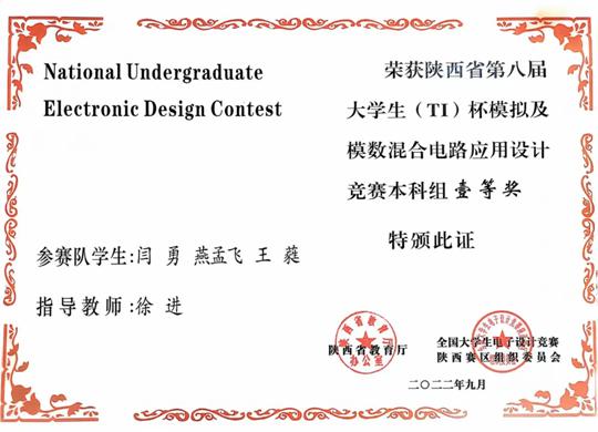 一路的付出终有收获,他在陕西省第八届大学(TI)杯模拟及模数混合电路应用设计竞赛中获得本科组一等奖;在第九届互联网+大学生创新创业大赛中获得陕西省赛区铜奖。