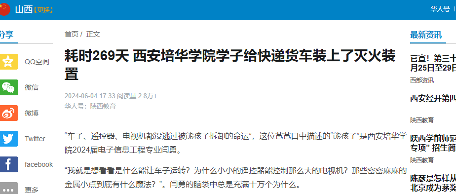 为什么要做这样一份毕设呢?闫勇说他在大二下学期时,自己网购的货物因货车着火而没有拿到,这件事情极大的影响到了当时竞赛项目的进程,所以就一直想着设计一个不会着火的快递货车,这个事情一直到快毕业还没实现,所以他和自己的论文导师说了自己的想法,得到了导师的大力支持,他和指导老师一起查文献、找数据,最终论证自己的这个想法具有很强的实用价值。
