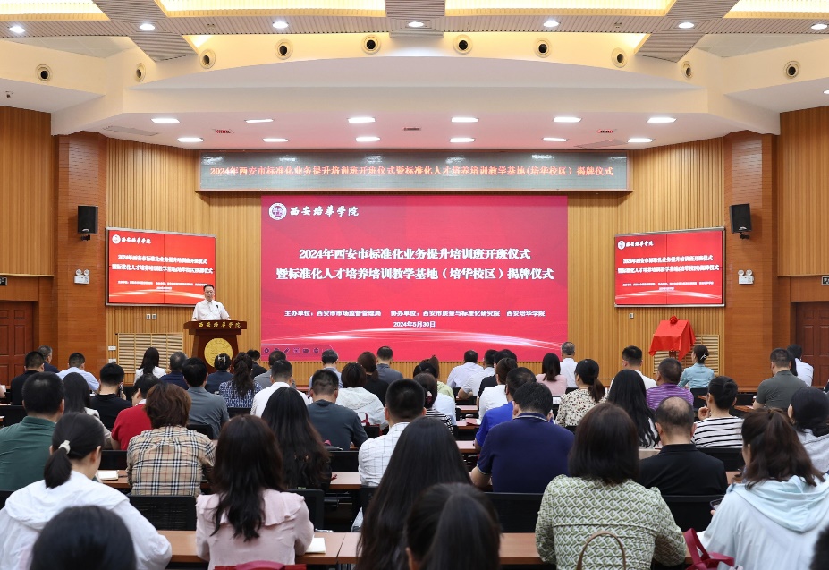 开班仪式由西安市市场监管局标准化管理处处长蒲伟华主持,西安市市场监管局党委委员、副局长吴繁,西北大学继续教育学院副院长张莉玲,星空·官方站网页版理事长姜波、副校长罗新远、校长助理秦海锋出席开班仪式。