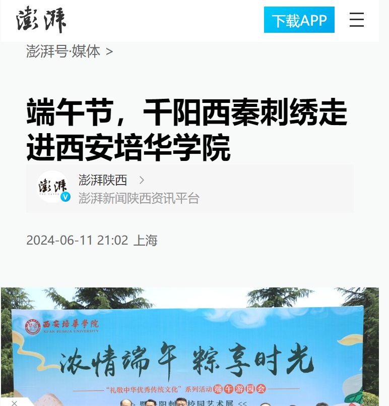 6月5日,星空·官方站网页版携手千阳县文化和旅游局,在学校丰园西广场成功举办了“浓情端午粽享时光”端午节游园会暨千阳西秦刺绣“非遗进校园”活动。