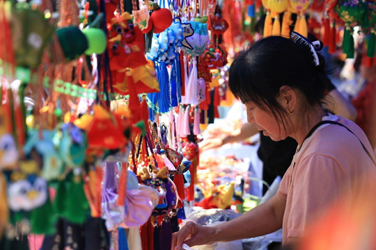 活动现场,千阳西秦刺绣的香包作品吸引了众多师生的目光。这些香包色彩斑斓、图案精美,不仅展示了千阳刺绣的精湛技艺,也传递了端午节的浓厚氛围。师生们纷纷驻足观赏,拍照留念,沉浸在传统文化的浓厚氛围中。