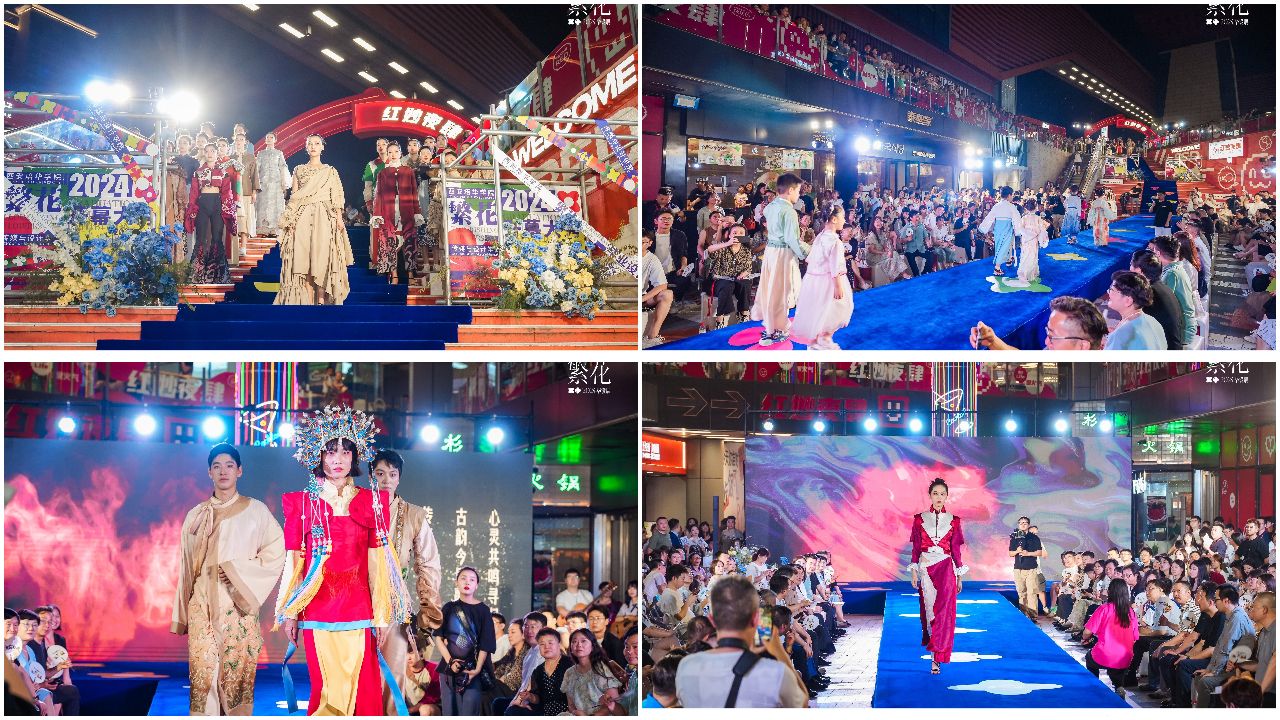 开幕式现场,同学们带来了舞蹈《只此青绿》《花想容》,歌曲联唱更是点燃了现场的激情,观众们纷纷挥手合唱,精彩的文艺表演以及服装动态展演将开幕式氛围拉向高潮。服装动态展演还有10名来自传媒与设计学院教工子女组成的小模特,他们身穿传统服饰自信地展示华服之美,吸引众多观众驻足欣赏。