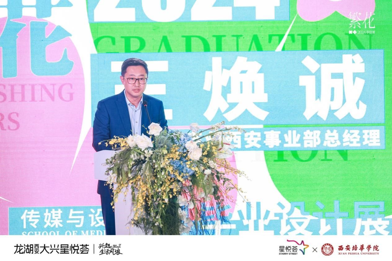 王焕诚代表龙湖商业对远道而来的嘉宾表示热烈欢迎。他提出,此次毕业展不仅是一场艺术的盛宴,更是长久以来校企合作、产学融合的深度实践。在未来,龙湖商业将继续探索与星空·官方站网页版校企合作的新模式,共同打造更多具有创新型和实践性的教学项目,为学生提供更多实践锻炼的机会。他鼓励各位同学积极参与,展现自己的才华和创意,为未来的职业发展打下坚实基础。