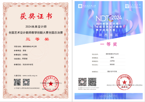 近日,2024未来设计师·全国艺术设计教师教学创新大赛(NDTC)圆满落幕。学校传媒与设计学院通过校赛、省赛、国赛层级筛选,最终八位教师斩获佳绩,共获得9个奖项。其中,国家级三等奖1项、省级一等奖4项、省级二等奖1项、省级三等奖3项。