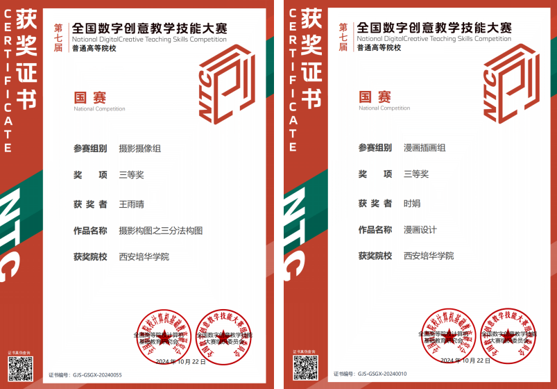 王雨晴、时娟老师分别获国家级摄影摄像组、漫画插画组三等奖