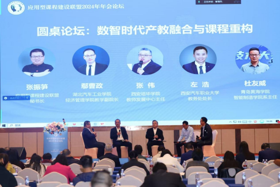 会上,张伟主任受邀主持“课改论坛”活动环节,并参加了年会论坛的“圆桌论坛”环节,围绕“数智时代产教融合与课程重构”主题与湖北汽车工业学院、西安汽车职业大学、青岛黄海学院的专家学者共同探讨应用型课程改革与产教融合的困境与发展。