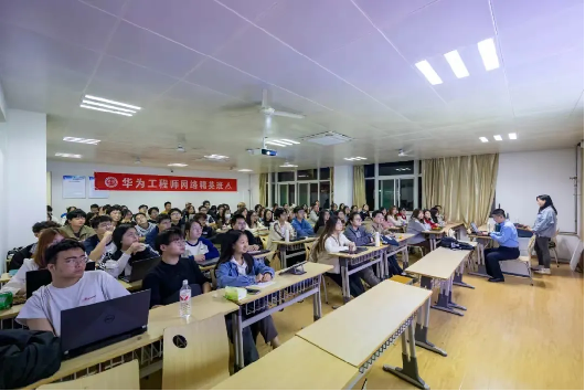 与此同时,华为ICT学院认证考试启动仪式在智能科学与工程学院举办。来自讯方技术的专家讲师面向200余名学生,详细介绍了华为认证的考试科目及行业发展现状,现场指导学生报名,为同学们开启了通往专业认证的大门。