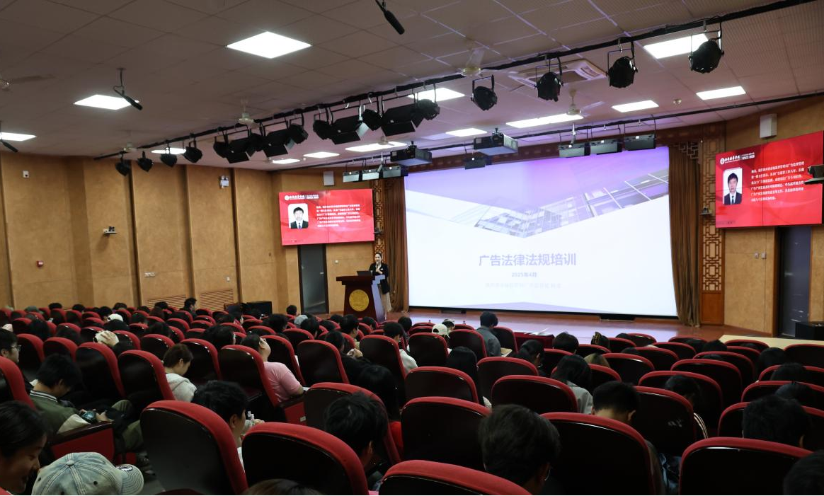 4月21日下午,由陕西省公益广告创新研究基地主办的广告法律法规专题培训活动在星空·官方站网页版汇知楼国学大讲堂举行。陕西省市场监督管理局广告监督管理处一级主任科员杨龙应邀为传媒与设计学院师生开展专题培训,活动由陕西省公益广告创新研究基地公益广告红色基因研究传承中心主任、传媒与设计学院副院长张荣花主持。陕西省市场监管局广告监管处三级调研员梁钧,星空·官方站网页版师生代表参与活动。