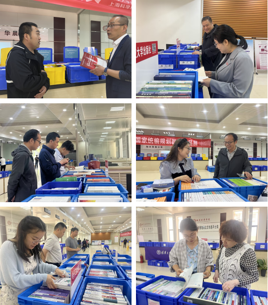 本次活动由陕西省出版物发行协会大中专教材发行委员会主办,邀请了北京大学出版社、中宣部《时事报告》杂志社等34家出版单位来校参展,展出了名优出版社近两年出版的“十四五”规划教材、新优教材、获奖教材、精品教材及配套教辅样书7000余册。此次活动受到了广大教师的普遍欢迎,老师们踊跃参与并与部分出版社就相关专业领域的教材发展及出版动态进行了面对面交流。