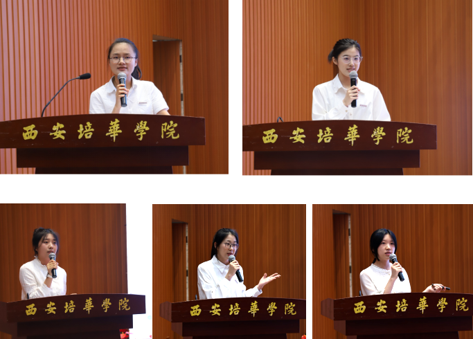 在经验分享环节,英语专业戚飞然、汉语言文学专业吕梦真、学前教育专业陈亚玲、汉语国际教育专业武熤苓、学前教育专业吴紫蕊等5位同学结合自身经历,分享了各自的考研“秘籍”。