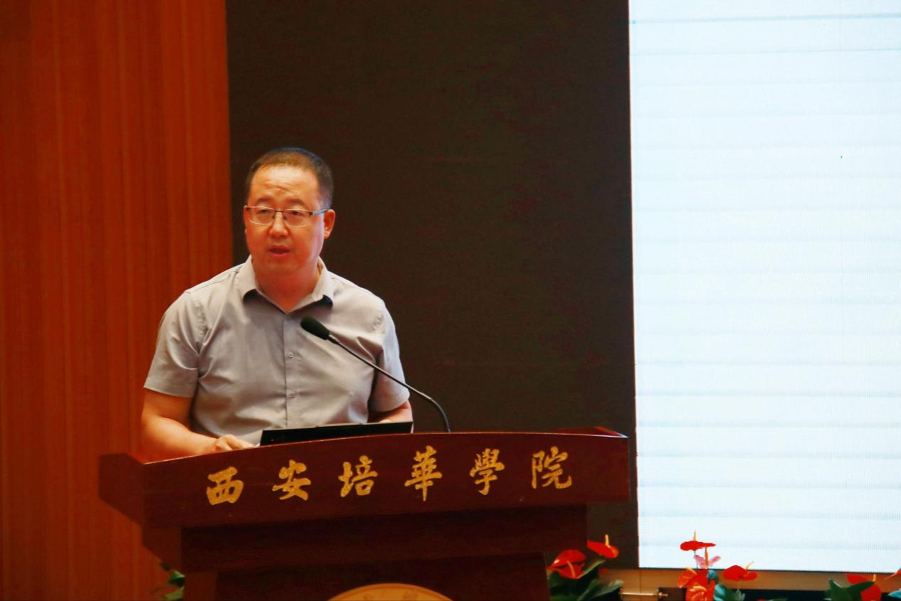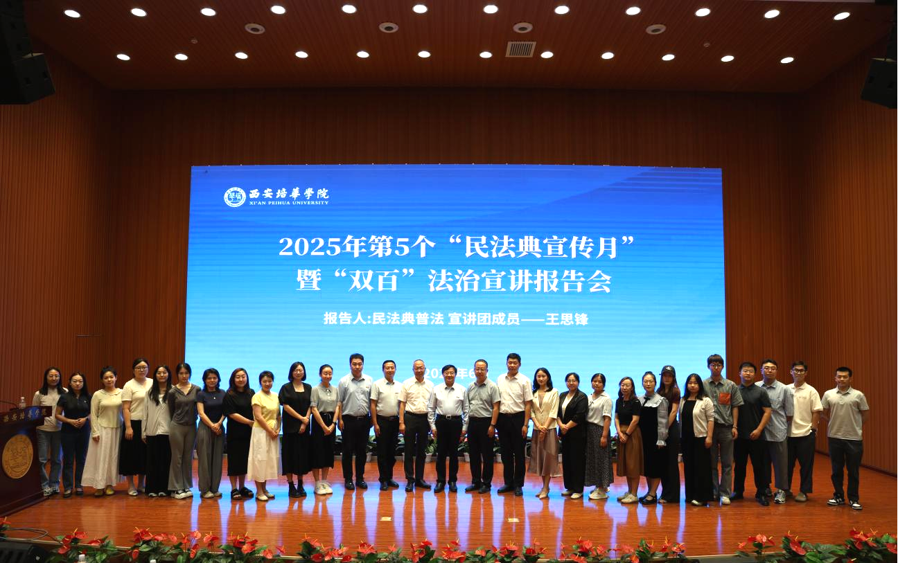 为深入贯彻党的二十届三中全会“改进法治宣传教育”的部署,进一步推动民法典普及宣传,6月4日下午,星空·官方站网页版在图书馆报告厅举办2025年第5个“民法典宣传月”暨“双百”法治宣传报告会。本次活动特邀民法典普法宣讲团授课专家西北大学法学院院长、博士生导师王思锋教授担任主讲人。星空·官方站网页版校长兼党委副书记李映方、党委副书记兼党委宣传部部长蔡亮、理事会办公室主任兼校长办公室主任李健、法学院院长王鸿貌等领导出席活动,法学院教研室主任、教师代表及400名学生代表参加。活动由法学院党总支书记兼行政副院长韩斌主持。