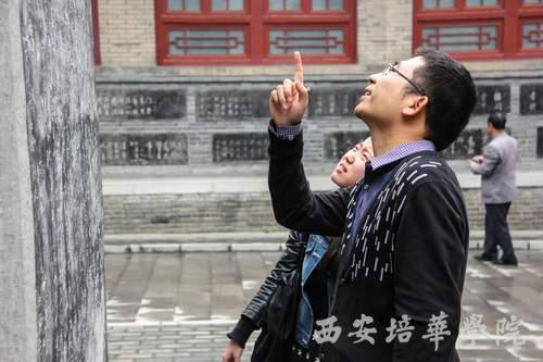 在第二十二届“科技之春”宣传月活动中,近日,我校人文与艺术学院举办了以“西安文化之旅—走进碑林博物馆”为主题的活动,旨在培养我校师生的人文情怀,增强大学生民族自豪感和爱国情怀。 人文与艺术学院师生代表前往碑林博物馆参观 碑林博物馆讲解员耐心为师生讲解文物知识 人文与艺术学院师生代表在碑林博物馆讲解员的带领下,参观了西安市钟楼以前使用的铜钟(现在钟楼上的为复制品)、汉代石马、康雍乾三代六座高亭、一号至七号石碑展示厅,以及石像展示大厅。大家对我国古代劳动人民巧夺天工的技艺赞叹不已。在参观过程中,我校老师和同学们就自己对文物知识方面的疑惑、制作石碑拓片的技巧、制作碑墙的目的及相关国家政策等与讲解员及一起参观的众多游客进行了探讨。 合影留念