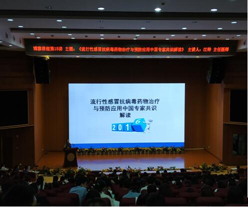 她通过详细的数据,为学生们介绍了全国和陕西严峻的流感防控形势,详细解读了流感的诊断和治疗原则、禽流感的临床表现、流感的抗病毒治疗和常用流感抗病毒药物的规范使用,讲座中全面介绍了抗流感病毒药物及作用机制,并结合使用案例详尽解读了可威奥司他韦等抗流感药物的用药机制和病理机制等,为流感的预防和治疗提供了临床用药依据。