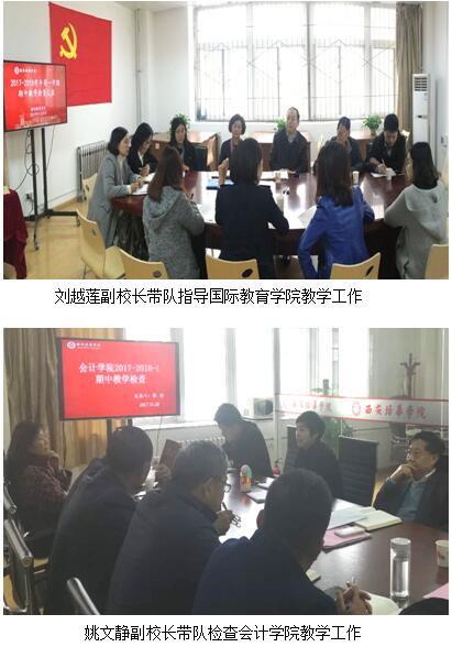 本次期中教学检查采取院(中心)自查和学校集中检查相结合的方式进行。10月25日,学校教务管理中心下发了《星空·官方站网页版2017-2018学年第一学期期中教学检查工作通知》(星空(中国)体育网教函〔2017〕52号),要求各院(中心)按照通知要求,结合本单位具体情况进行为期一周(第十周)的自查工作,并提交自查报告。第十一周,教务管理中心下发了《关于开展2017-2018学年第一学期期中教学检查工作安排的通知》(星空(中国)体育网教函〔2017〕54号),就期中检查具体安排及有关要求作了重点强调,并成立了由学校党政领导,教务管理中心、转型发展与评估办公室、实验管理中心领导及相关工作人员组成的检查组,分6组对全校14个院(中心)进行了现场检查,检查内容上增加了本学期课程设计、实习等教学计划的执行情况检查,确保了教学主要环节的全过程质量监控。并就检查中发现的问题与相关院(中心)进行了现场沟通和反馈。检查期间,校长王拴才、副校长李映方、刘越莲、姚文静、于国亮、徐国富、财务总监薛清、校长助理姜涛、秦海锋深入到一线实地指导检查工作,并认真听取了各院(中心)的自查情况汇报,以及对学校有关方面的建议和意见,并对提出的问题进行了逐一答复,同时也给出了一些合理化的建议。各院(中心)负责人、教学主管、教学干事及骨干教师参与了检查汇报工作。