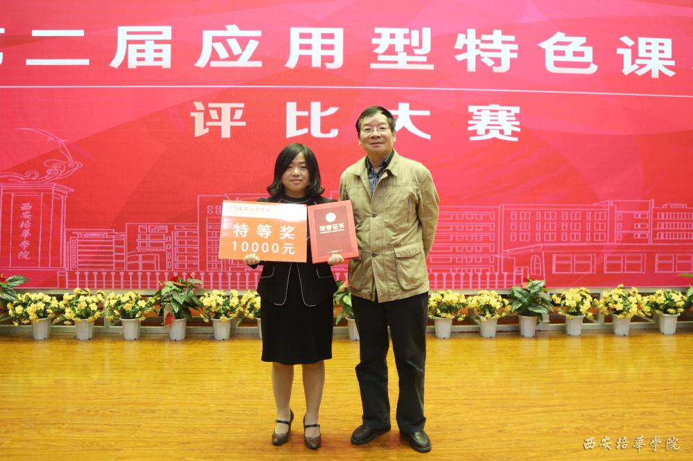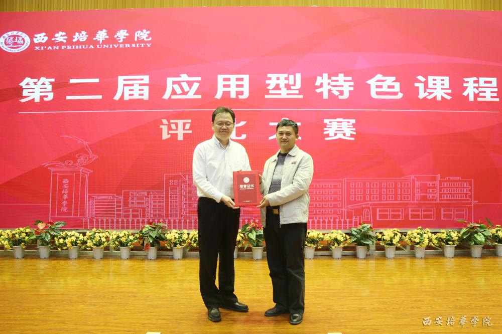参会领导及嘉宾为获得本届应用型课程评比大赛优秀奖的教师代表颁奖