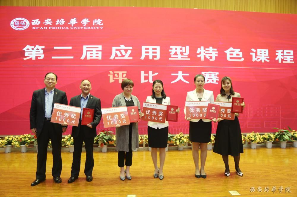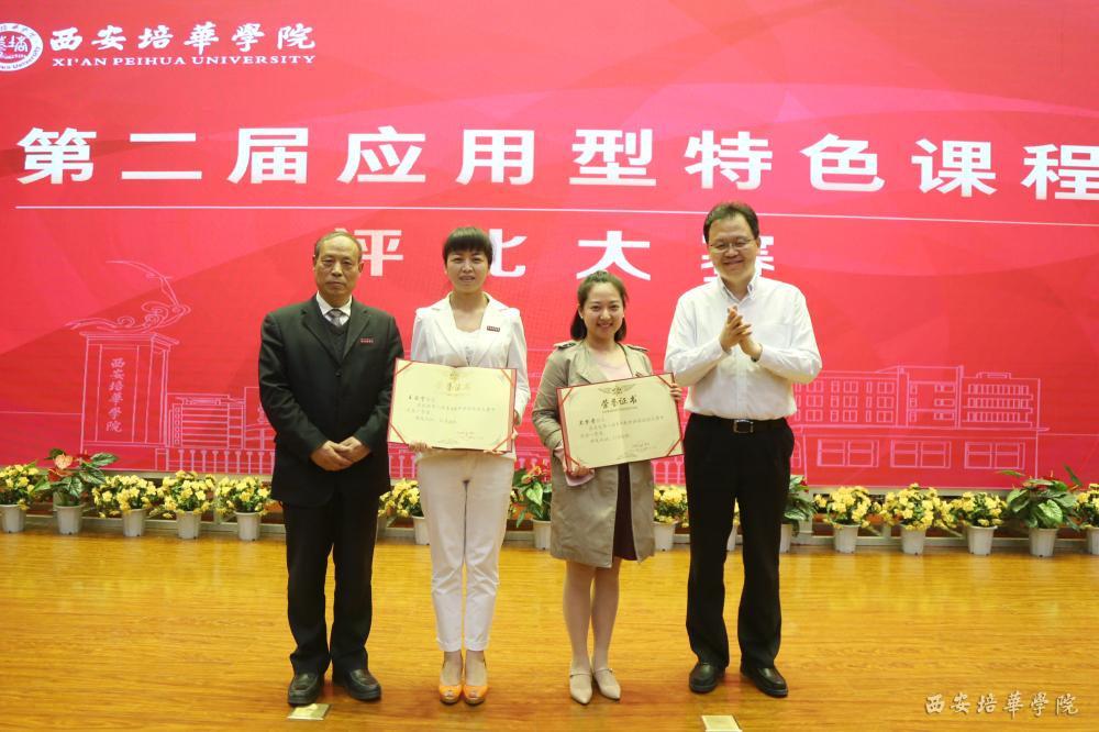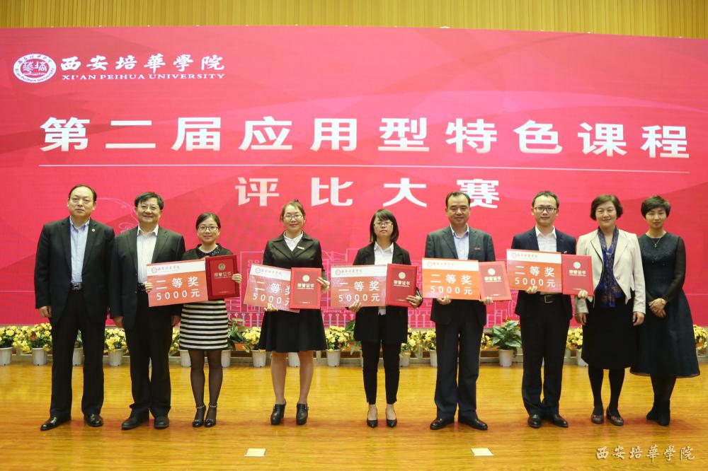 参会领导及嘉宾为获得本届应用型课程评比大赛二等奖的教师代表颁奖