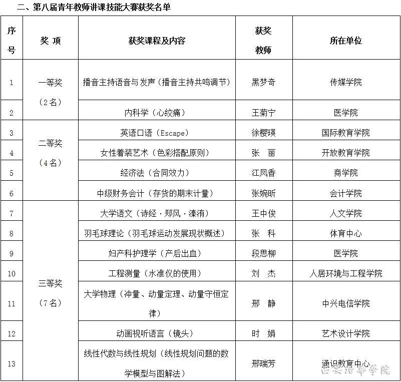 参会领导及嘉宾为获得第八届青年教师讲课技能大赛一等奖的教师代表颁奖