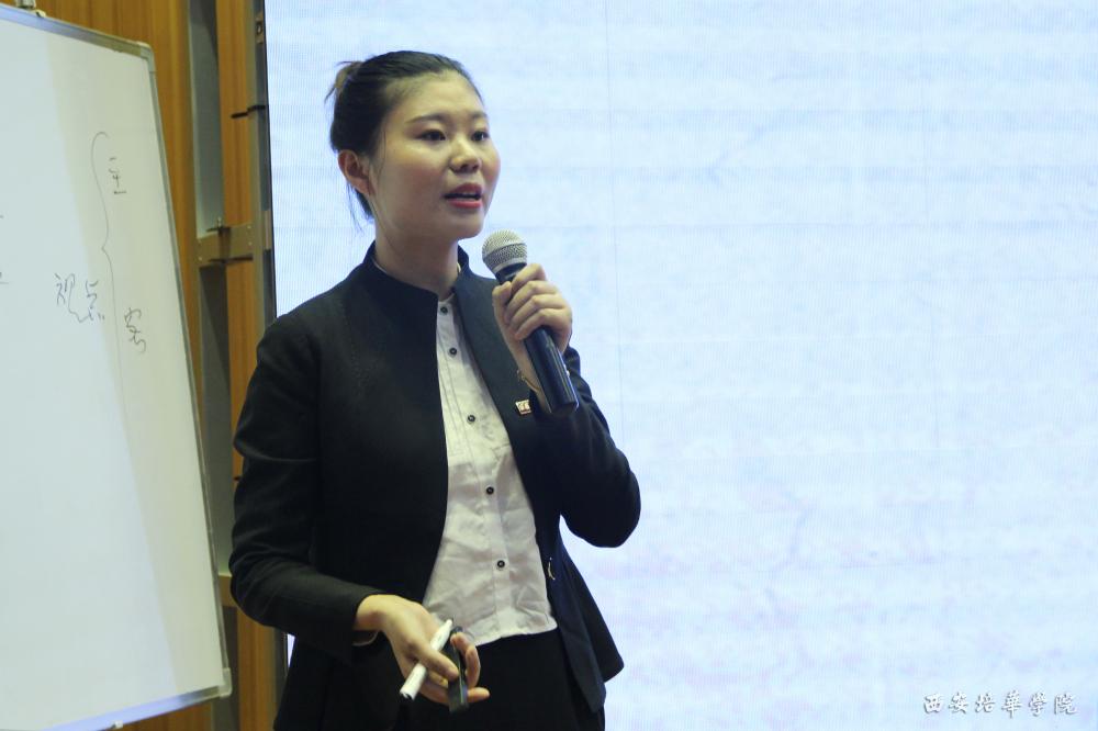 艺术设计学院的时娟老师,讲述的是动画视听语言镜头运用。运用举例子和讨论互动的方法,达到教学目标