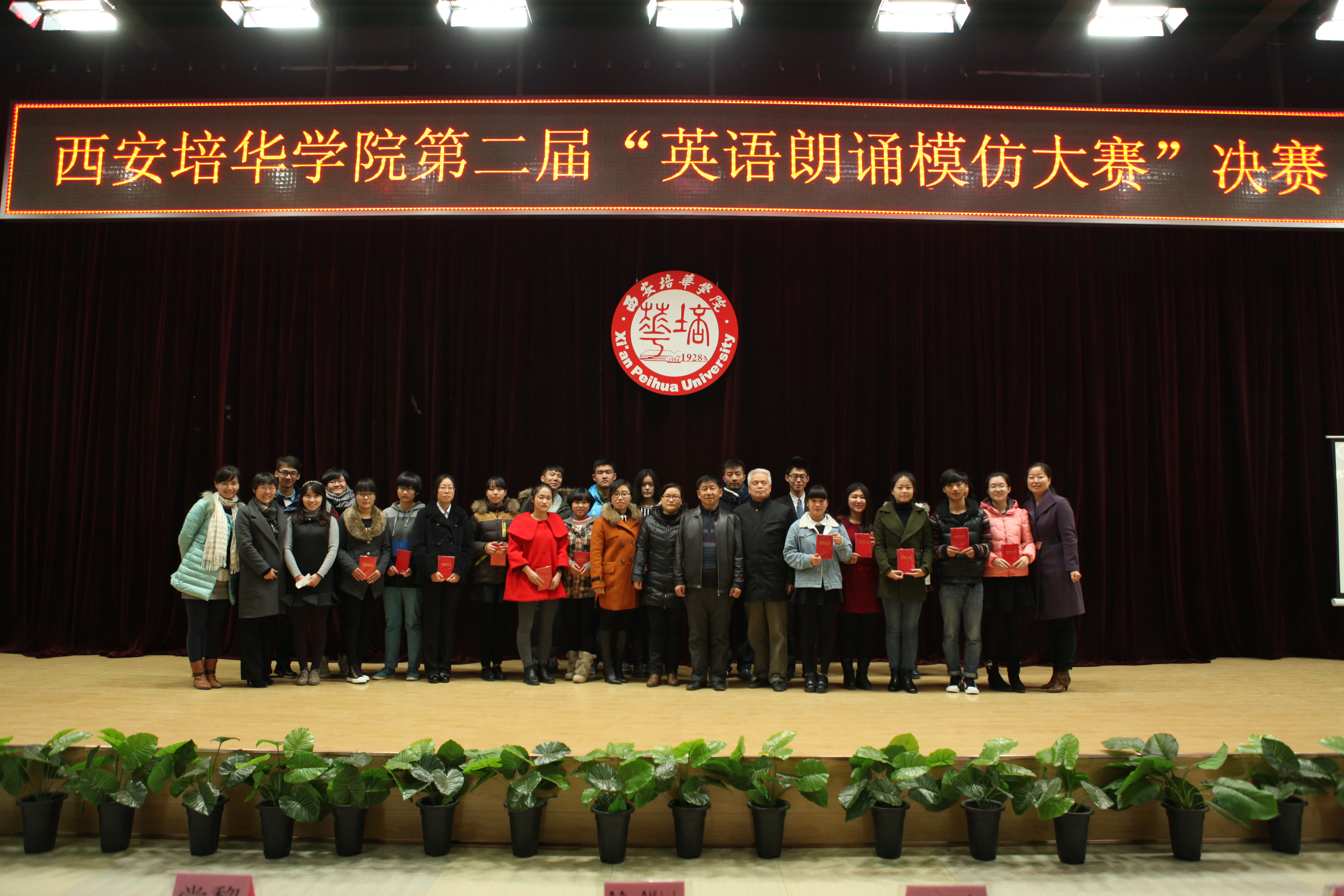 下午2时许,比赛正式开始,选手们用英语认真、流畅地朗诵模仿所学教材中的课文,或是从网络上下载的名人演讲,他们个个精神饱满,激情飞扬。之后,Dr. Steve O. Michael针对选手们的表现进行了精彩的点评,他不仅充分肯定了同学们的学习精神,而且还就朗诵技巧方面提出了有益的建议。经过激烈的角逐,来自商学院国际经济与贸易专业的高强及其他院系的共6位同学分别获得了一、二、三等奖,大学英语教研部贾梦琦等5位教师获得了优秀指导教师奖。最后,与会领导为获奖者颁发了奖品及荣誉证书,并与他们合影留念。