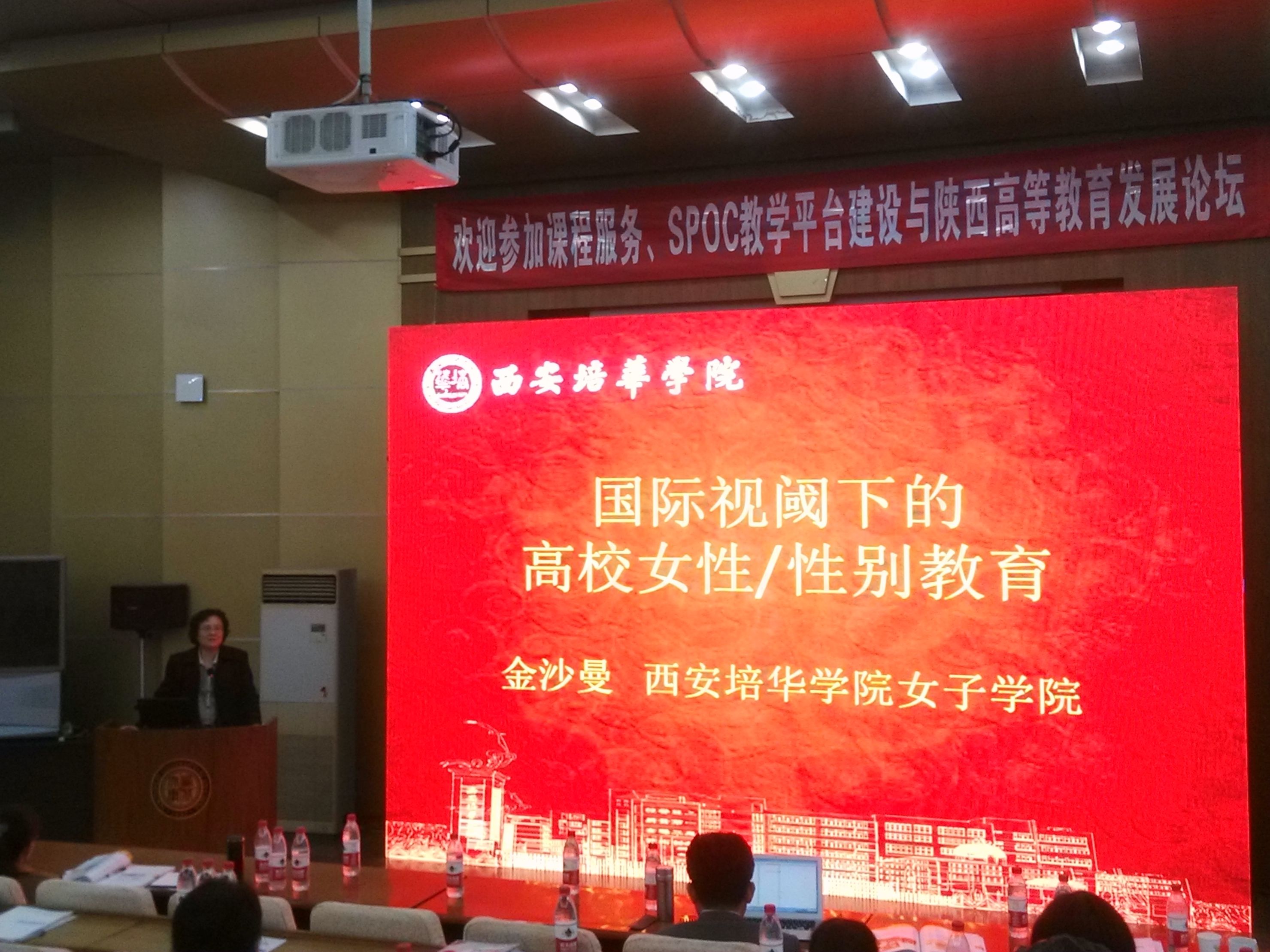 2014年11月8日,我校教师在教务处副处长唐学学、女子学院副院长金沙曼教授的带领下,一行人应邀参加了有陕西省高等教育学会举办的“课程服务、SPOC教学平台建设与陕西高等教育发展论坛”。