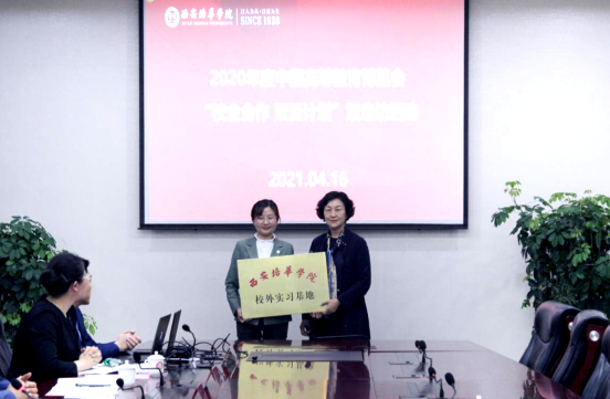 专家组组长吴静怡介绍了“双百计划”的背景和意义,希望通过此次活动能够进一步了解学校在校企合作方面的具体举措和成效,充分挖掘合作案例的亮点和特色,并向全国高校推广,真正将产教融合做真、做实,校企共同提升人才培养质量。专家组组长吴静怡向《以职业能力为导向的法律人才培养实践》案例负责人赵洁老师颁发了2020年度中国高等教育博览会“校企合作 双百计划”典型案例提名证书。学校副校长刘越莲为校外实习基地陕西元智律师事务所颁发了校外实习基地牌匾。