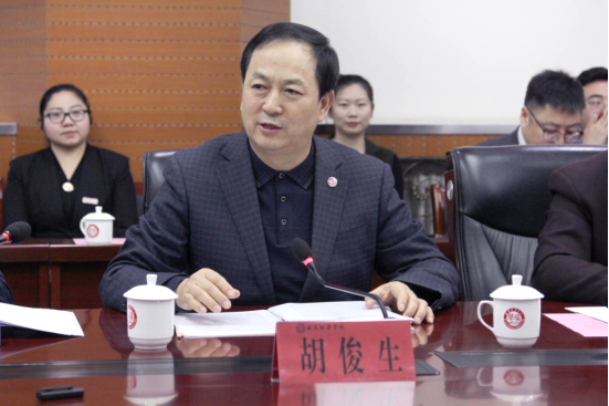 随后,2020年度中国高等教育博览会“校企合作,双百计划”双走访座谈交流在学校长安校区举行。常务副校长胡俊生对专家组以及到场的高校和合作单位领导表示热烈欢迎,并介绍了星空(中国)体育网的发展历史、基本情况以及近几年在校企合作方面取得的成绩。胡俊生副校长对陕西云德律师事务所等校企合作单位多年来的支持表示感谢,希望专家组通过本次双走访活动能给予学校更多的指导帮助。