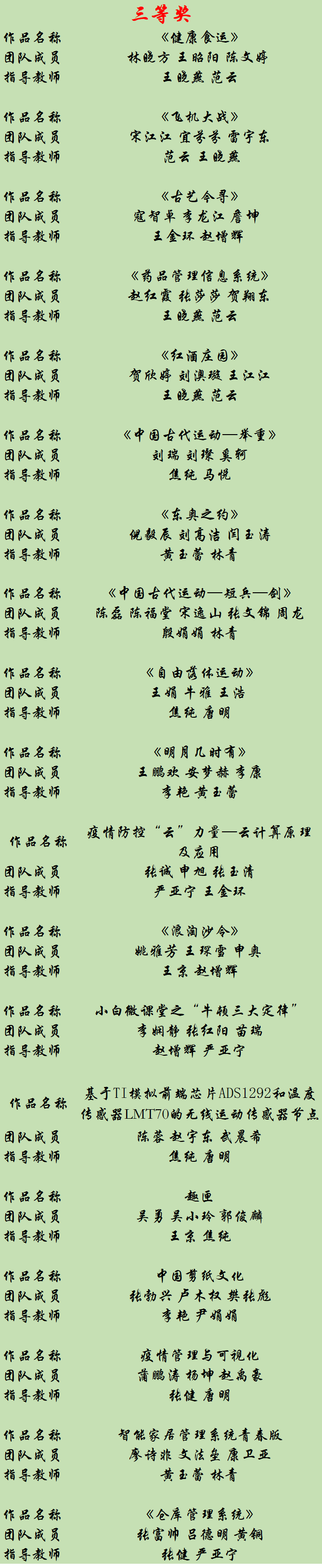进入国赛的同学获奖情况