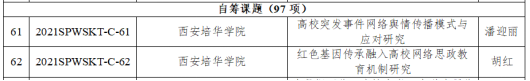 为深入贯彻落实全国、全省教育大会和高校思想政治工作会议精神,提升陕西省高校网络思政工作水平,经学校申报、专家评审、立项公示,中共陕西省委教育工委发布《关于首批陕西高校网络思想政治工作研究课题与实践项目立项的通知》,决定对重点课题及项目予以立项。