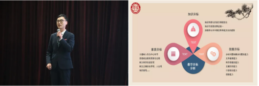 传媒学院播音与主持艺术系主任尚勇就新媒体视域下传统文化与《语言学概论》课程融合创新进行了分享,他将中国传统文化思政元素巧妙融入专业课程,将古典小说、诗词歌赋、传统色彩、方言等内容融入案例教学、实践训练、情境表演、考核考试等环节,传播了传统文化,提高了语言表达能力,使学生感受到了语言之美。