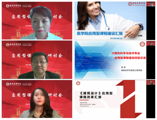 医学院教学副院长王菊宁从学校开展应用型课程改革的背景、医学院改革的现状、主要做法以及后续开展应用型课程改革的意见和建议出发,作经验分享汇报。智能科学与信息工程学院计算机系系主任焦纯教授作计算机科学与技术专业在应用型课程改革方面的经验分享汇报。建筑与艺术设计学院建筑系教师魏舒乐老师从《建筑设计》的课程定位、课程设计、课程实施和教学成果四个方面出发,作课程层面的应用型课程改革经验分享汇报。
