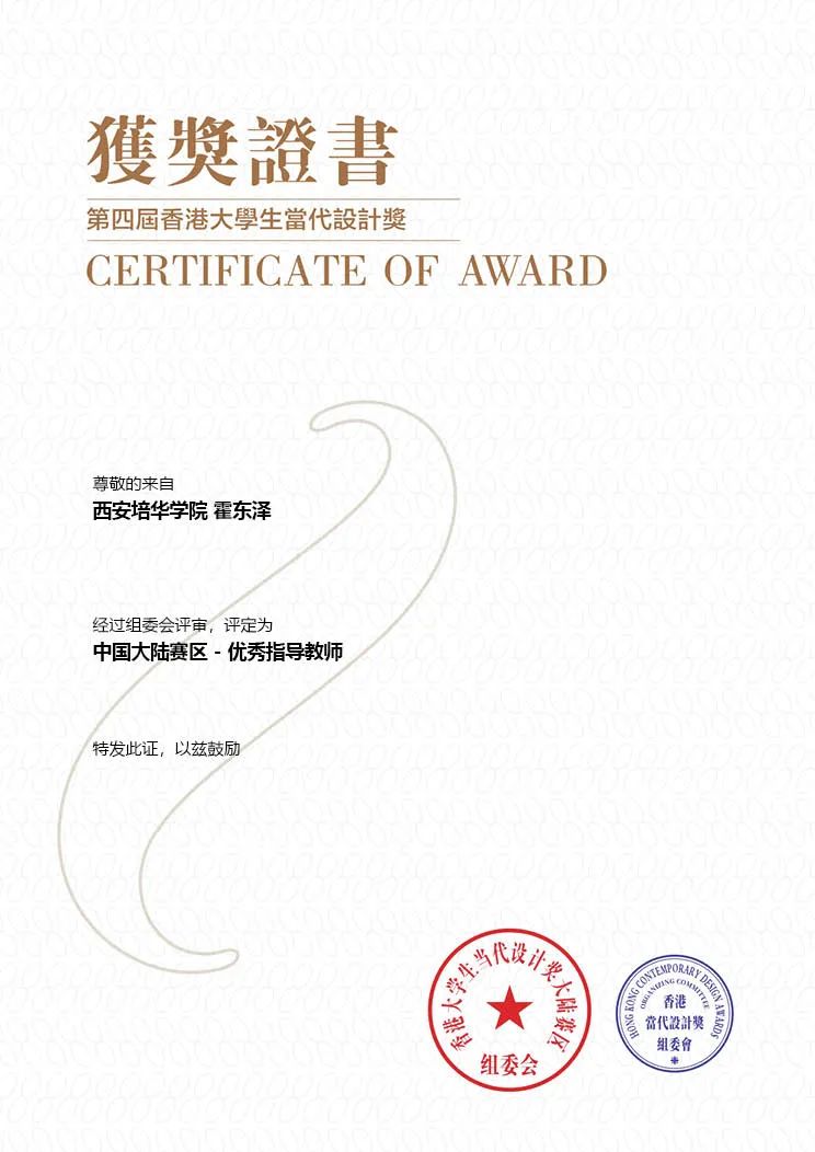 建筑与艺术设计学院张子墨、霍东泽老师获大陆赛区优秀指导教师奖