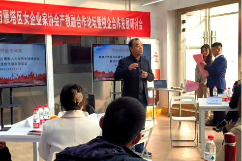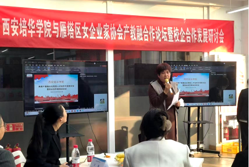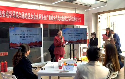 本次“跨界·融合”产教融合应用型人才培养专项研讨会暨校企合作意向洽谈会,促进了星空·官方站网页版与西安女企业家协会的沟通与共建,有利于校企合作、资源共享,拓宽了人才的培养渠道和维度。参加本次会议的雁塔区女企协会员有:雁塔区女企协会会长梁树言、秘书长李国兴,西安卡西尔环保科技股份有限公司总经理陈波,陕西新同方汽车维修保养服务有限公司董事长李亚娟,西安鲜女品牌经营管理有限公司人资总监王峥嵘,陕西慧德青少年心理健康教育研究院副理事长梁冰妍,陕西顺利办信息科技控股有限公司副总经理万楠,西安有温度教育科技有限公司副总经理高翱,西安源初环境科技有限公司总经理蔡月清,西安市莲湖区邱学华门诊部院长邓黎,西安利兹美医疗美容有限公司总经理王立库,中科博文教育科技(西安)有限公司总经理杨鹏,陕西精挑优先供应链管理有限公司总经理苏超,陕西奇兔信息科技有限公司总经理祁昌锋,中正致诚人力资源(陕西)有限公司董事长张耀升,陕西鲁公筑学实业有限公司副总经理周薪,西安旅游协会负责人丁晓阳,西安康姿宝生物科技有限公司总经理徐维静,西安市退役军人服务协会副秘书长王艳,西安旭东升保洁服务公司项目总监赵森林。