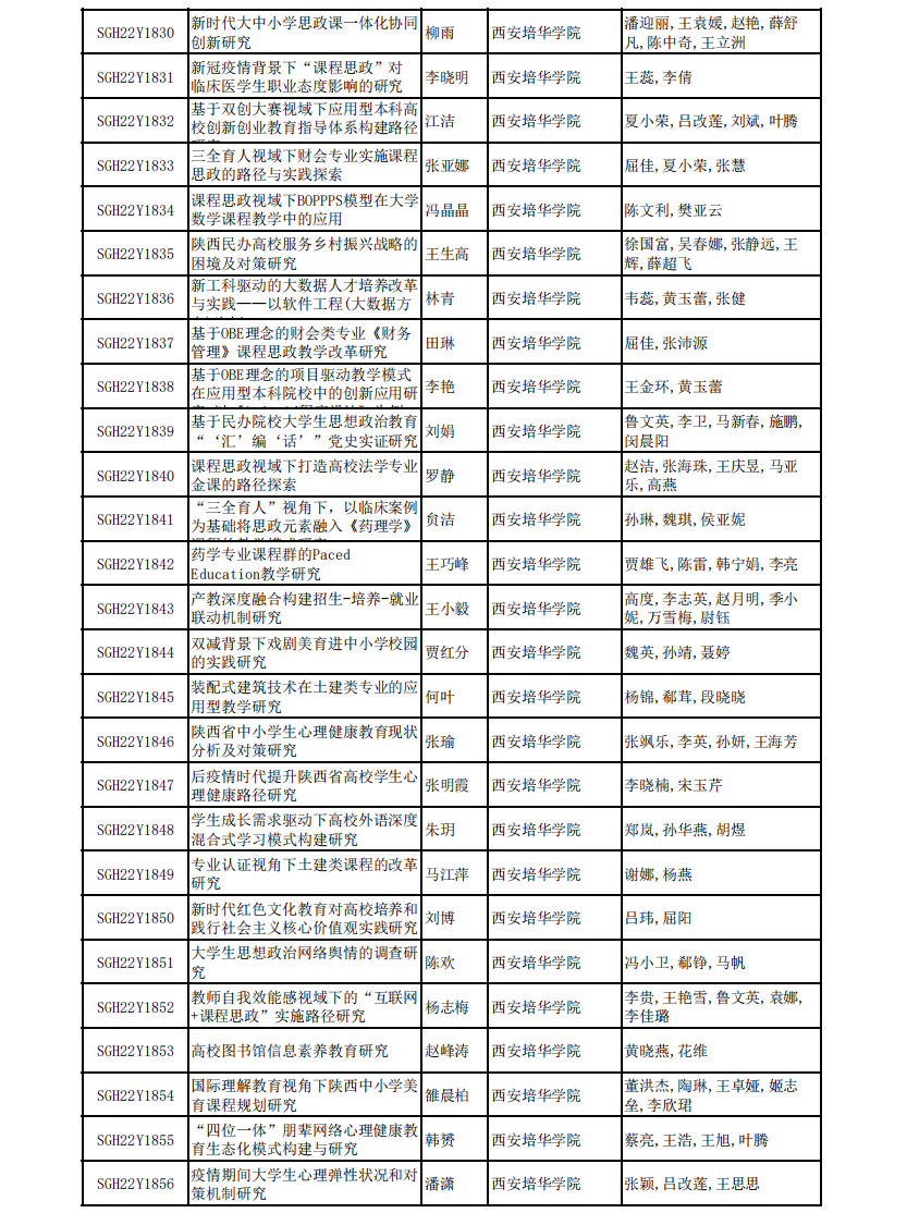 近日,陕西省教育科学规划领导小组办公室公布了2022年度陕西省教育科学“十四五”规划课题立项结果,我校获批43项课题,其中,一般课题40项、青年课题3项。