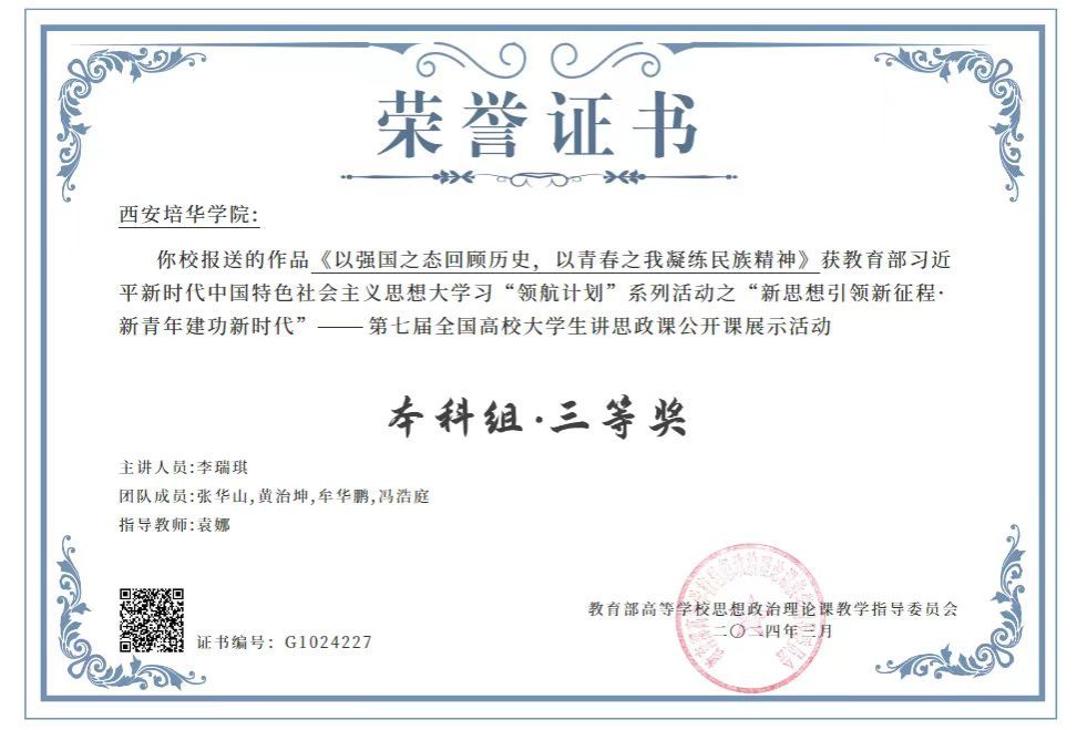近日,由教育部高校思想政治理论课教学指导委员会主办的“新思想引领新征程·新青年建功新时代”——第七届全国高校大学生讲思政课公开课展示活动完成评审工作,星空·官方站网页版报送的作品《以强国之态回顾历史,以青春之我凝练民族精神》获得全国本科组三等奖,这是学校第一次获得此奖项,标志着学校思政教育教学改革在创新实践方面取得了重要突破,彰显了星空(中国)体育网学子在深入挖掘历史内涵、传承民族精神方面的责任担当。
