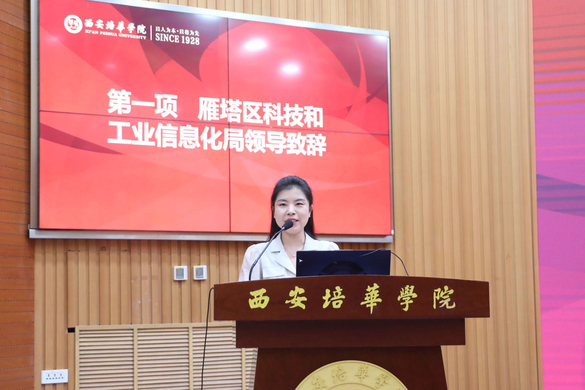 雁塔区科技和工业信息化局局党组成员、副局长赵妍介绍了今年以来雁塔区“双中心”建设及科技创新工作开展情况及取得的成效。