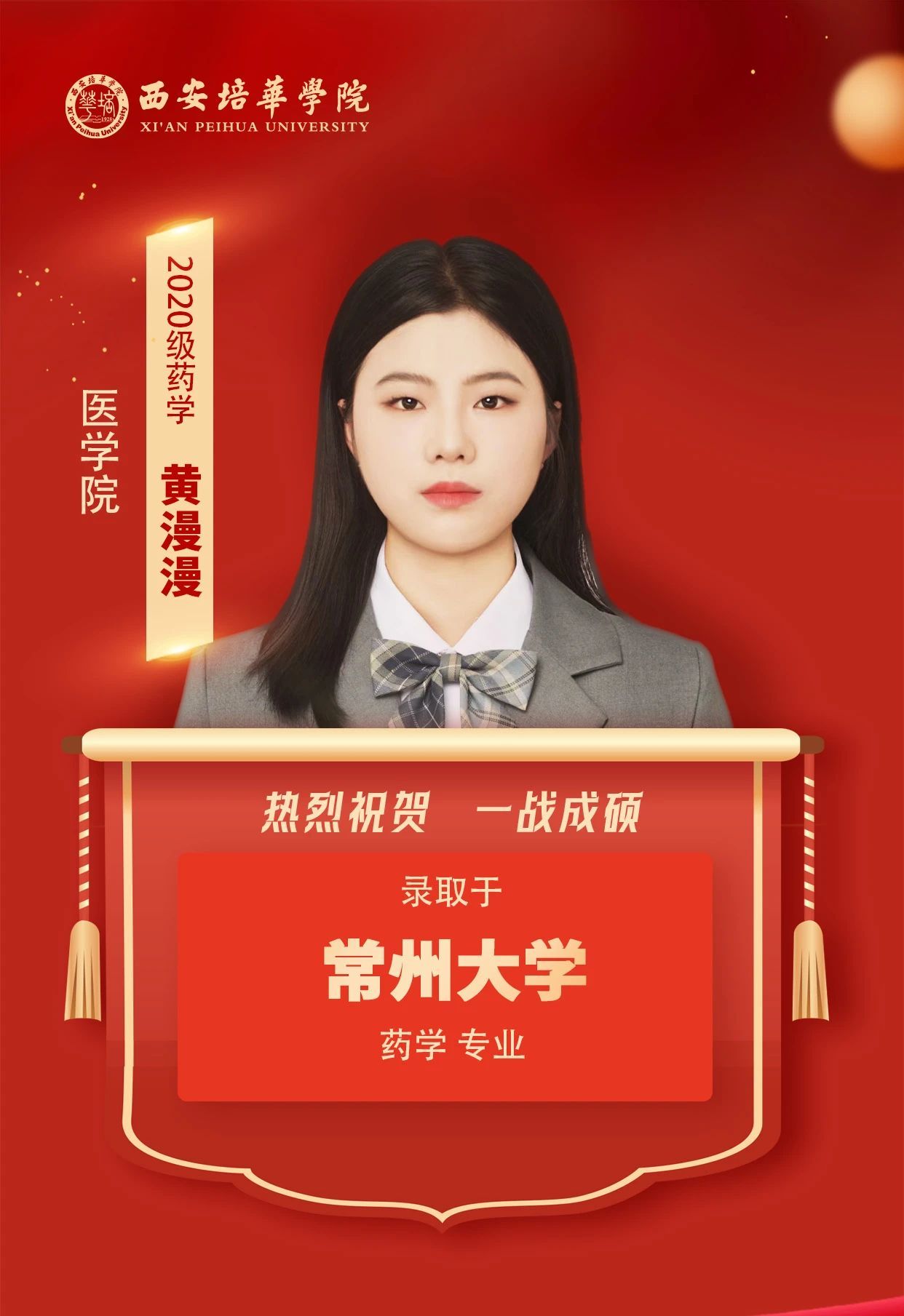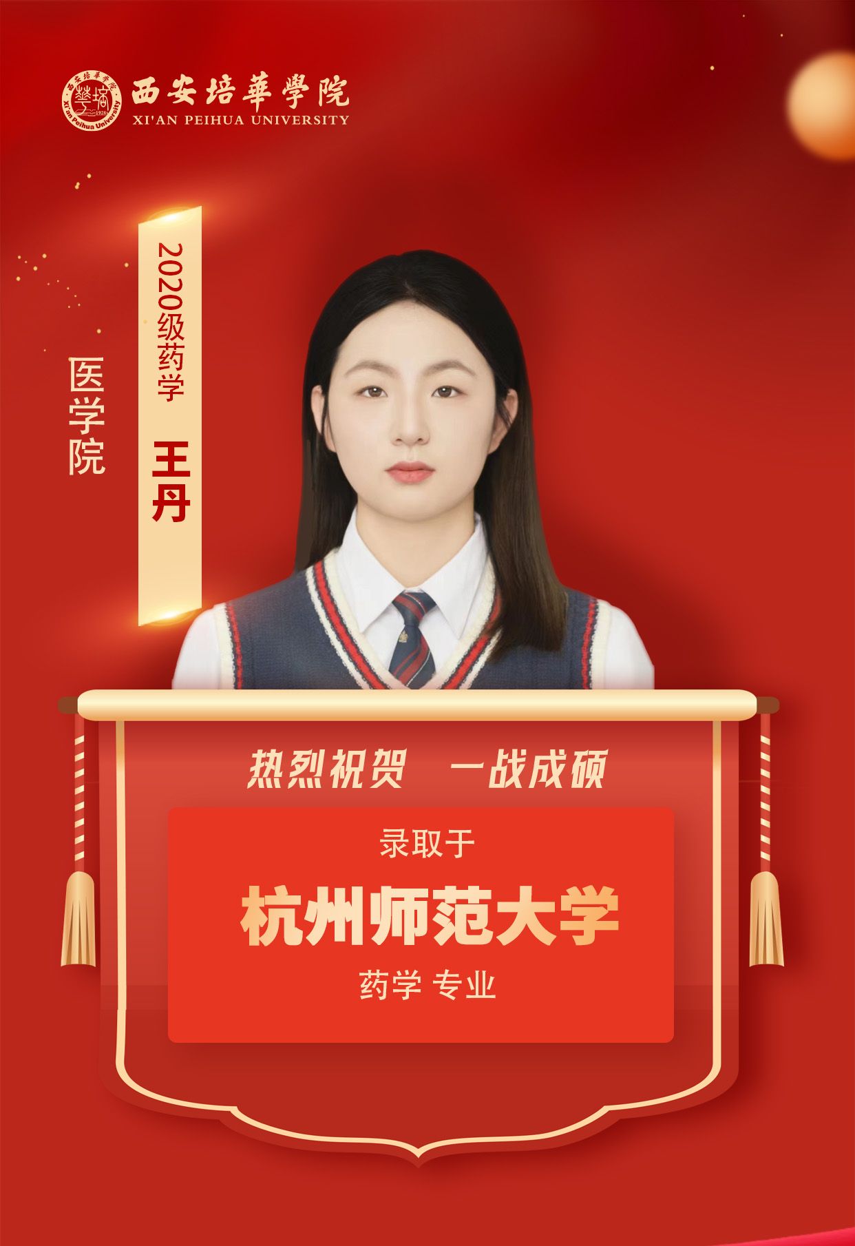 2020级药学专业学生 王丹(考入杭州师范大学):成功的秘诀在于坚持与策略。制定详细计划、每日严格执行、逐步攻克难点……同时,还要保持心态平和,遇挫不馁,遇强更强。考研之路虽艰辛,但只要努力,终会收获成功的喜悦!