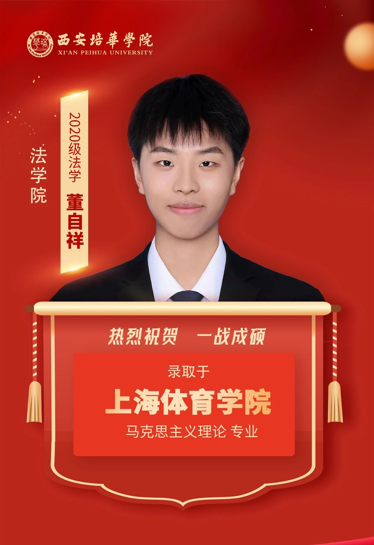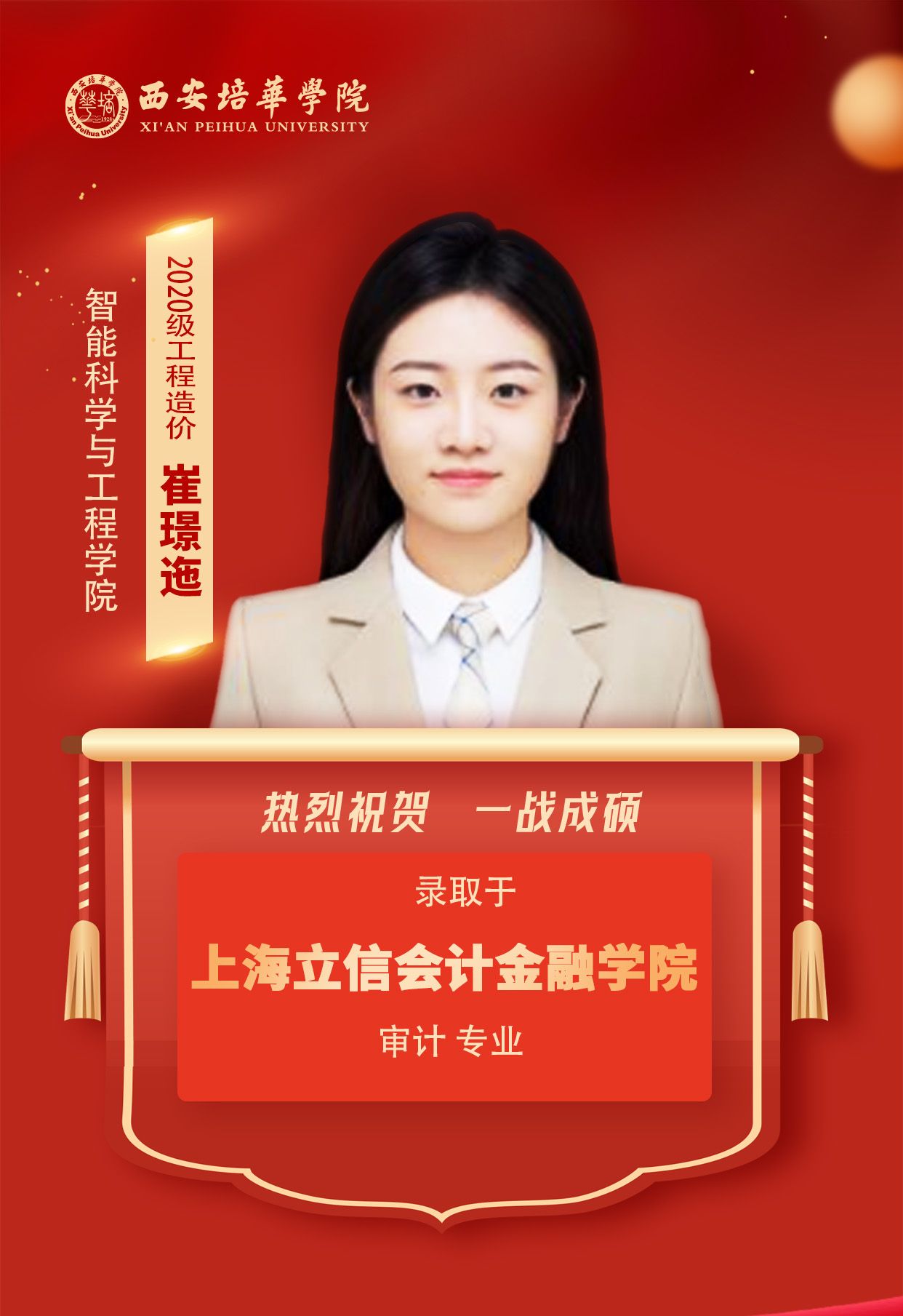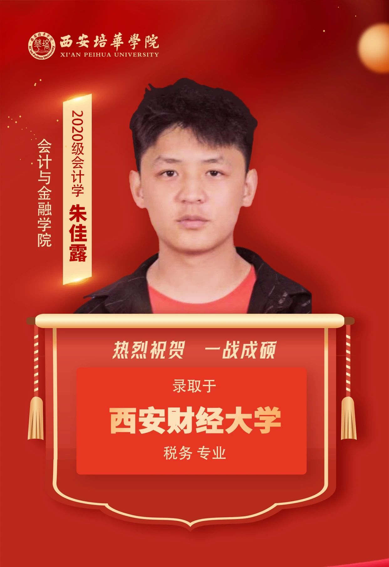2020级会计学专业学生 朱佳露(考入西安财经大学):考研注定是一场热烈、残酷的战斗,从酷暑到严寒,从白天到黑夜,我始终坚信走过的每一步都算数。愿你莫负星光,披荆斩棘,奔着目标而行,最终抵达你心中的远方。