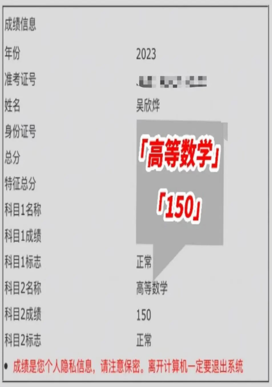 吴欣烨在专升本考试中获得高数满分的好成绩