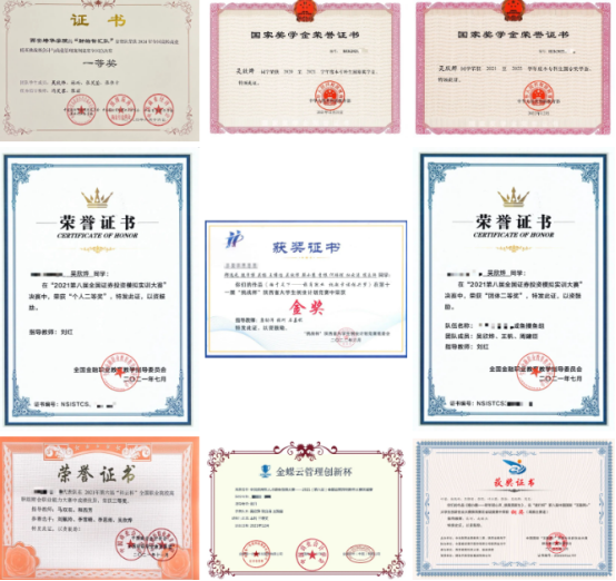 她曾获2020-2021学年国家奖学金,2021-2022学年国家奖学金,2023年获陕西省优秀毕业生,曾获2024年全国高校商业精英挑战赛会计与商业管理案例竞赛全国总决赛一等奖,2024年创新创业训练计划省级立项,2023年“衡信杯”大学生智慧税务大赛陕西省二等奖等奖项