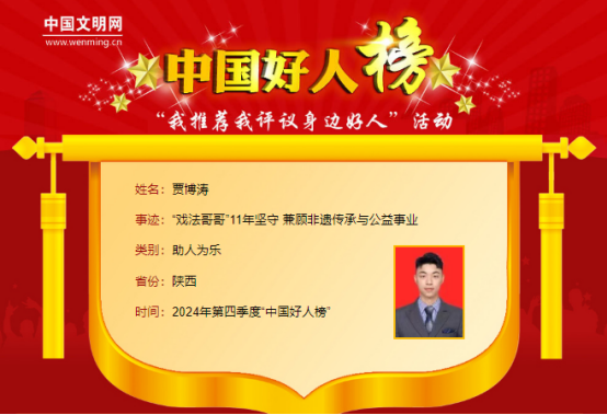 贾博涛入选助人为乐“中国好人榜”