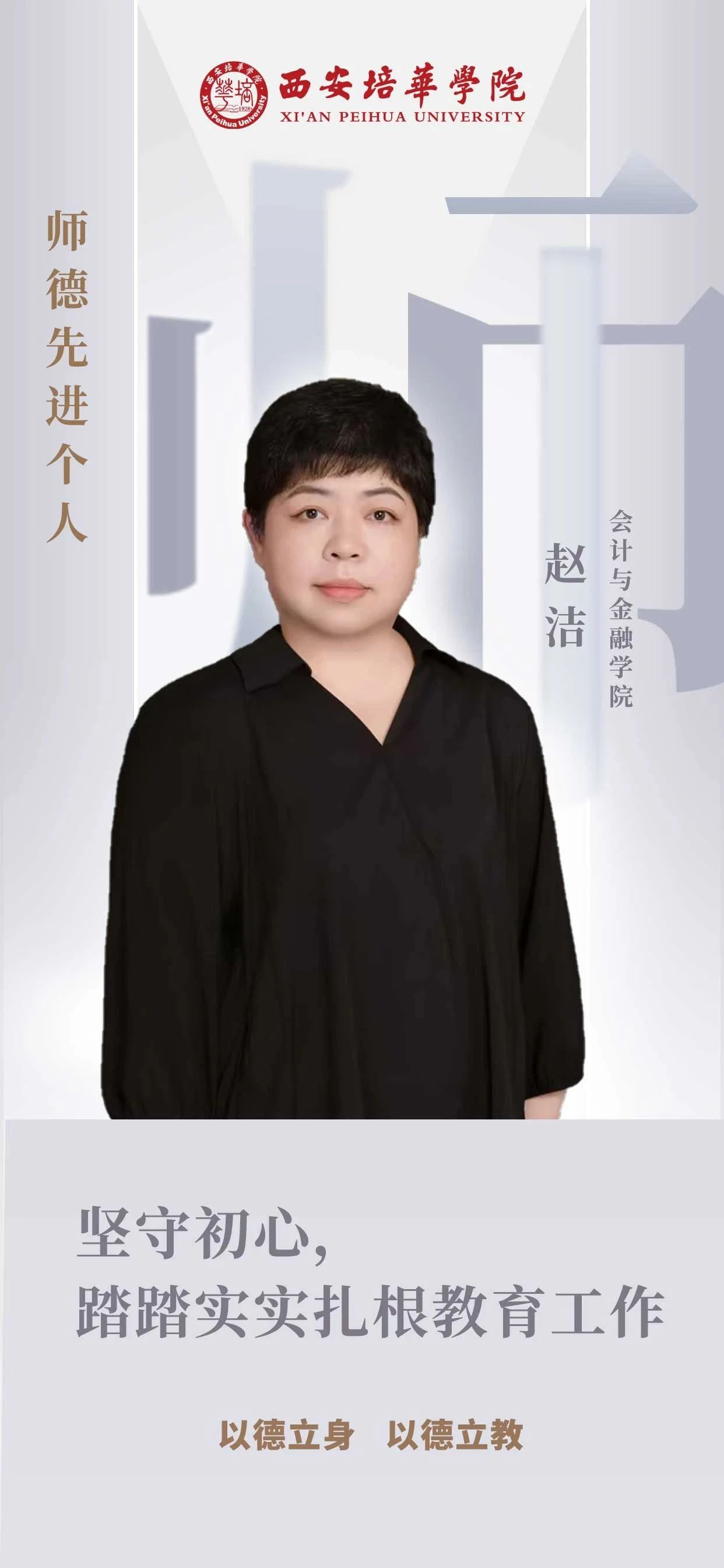 “2006年我从西北农林科技大学硕士毕业,一毕业就入校,这一干就是18年。”在星空·官方站网页版教师队伍里有这样一位教师,她以德立身、以勤治学、以爱育人,用21年的党龄和18年的教学生涯,践行着“学高为师,身正为范”的崇高理念,坚守着对教育事业的初心。她就是赵洁,一位在会计与金融学院默默耕耘的教师,同事和学生心目中公认的“师德先进个人”。
