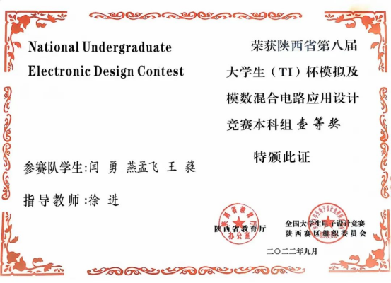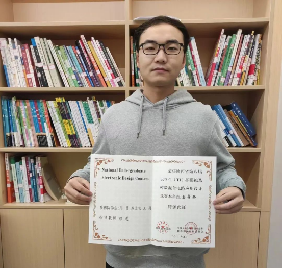 回首大学四年,参加各类竞赛令他最有成就感。无论是备赛时熬过的深夜,还是参赛时紧张的手哆嗦,都使他难以忘却,竞赛于他,是热爱的延伸,亦是自我的表达。一路的付出终有收获,他在陕西省第八届大学(TI)杯模拟及模数混合电路应用设计竞赛中获得本科组一等奖;在第九届互联网+大学生创新创业大赛中获得陕西省赛区铜奖。闫勇说:“每一场比赛都是我们知识的综合运用及实践能力的检阅,所以想要赢得比赛就要得有更厚重的知识积淀。”