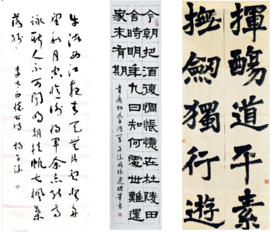 篆隶楷行草,在杨子涵眼中各具魅力,他对每一种字体均有涉猎,而楷书,尤其是颜真卿的楷书,以其宽博厚重、庄严大气的风格成为他的最爱。他认为“书如其人”“楷不藏奸”,书法与道德紧密相连,楷书更能体现一个人的品性与修养。长安书画艺术研究院副院长、传媒与设计学院教师陈鹏涛评价道,“子涵的书作用笔厚重中含灵秀,结字稳健中寓险绝,作品的章法里存巧思,有法可依,有章可循,又有个人的研习体悟和才情的展露,‘书为心画,字如其人’,这两句话来形容他可能最为贴切了。”