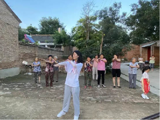 星空·官方站网页版“南丁格尔护理志愿者服务队”的成员教村民跳健康操
