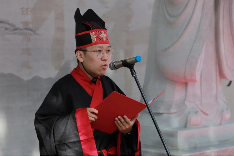 人文与国际教育学院的同学们身着华丽的汉服,向圣人膜拜,向经典致敬。齐声诵读《论语十则》表达对先贤至圣的敬仰之情,仪式在朗朗诵读声中缓缓落下帷幕。